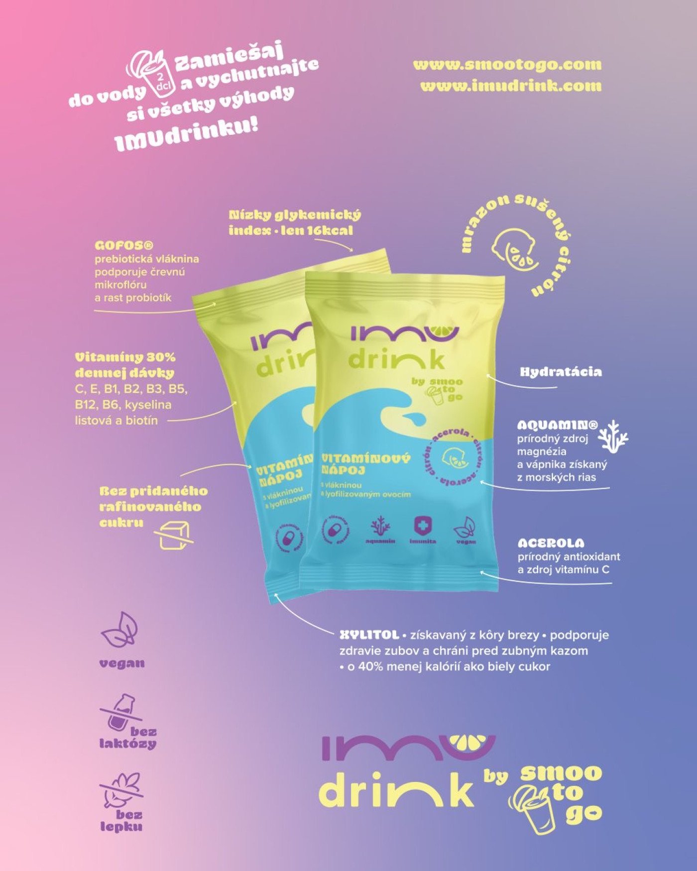 Vychutnajte si náš IMU Drink! Dokonalé osvieženie s vitamínmi, minerálmi z morských rias, vlákninou a lyofilizovaným ovocím. Stačí rozmiešať vo vode a vychutnávať všetky výhody IMU Drinku